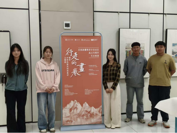 10月20日,庆祝新疆维吾尔自治区成立70周年艺术展演暨“行走的画卷——铸牢中华民族共同体意识主题展”在新疆和田学院艺术学院开展。展览以多种绘画艺术形式呈现,延续至10月31日,展现祖国壮丽风貌、人民奋斗历程、文化交融成果与时代发展脉搏,礼赞新疆70年辉煌成就。