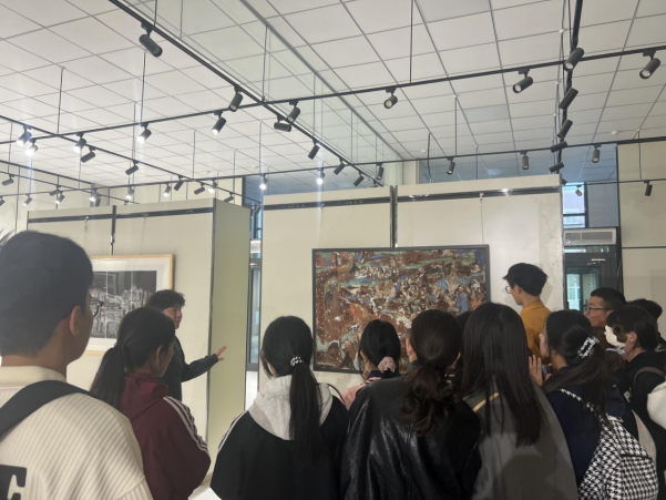值得关注的是,此次展览并非单纯的艺术展示,更深度融入新疆和田学院大学美育课程体系,成为该校美育课的 “移动课堂”。新疆和田学院艺术学院将展览与《大学美育》《艺术概论》等课程教学计划结合,组织学生分批次观展,要求结合展品撰写美育心得。“以前在课堂上听老师讲‘民族艺术交融’,总觉得抽象,现在站在《山河壮美》系列作品前,看着国家的锦绣山河写,突然明白艺术里藏着的‘同心结’。” 新疆和田学院 2025 级康复专业学生库拉西·吉恩思别克的感受,道出了众多同学的心声。“展览把远在课堂之外的艺术资源、文化故事搬进校内,让学生在欣赏作品的同时,触摸到中华文化的温度,这是传统课堂难以替代的美育效果。”大学美育课教师闫科旭表示。